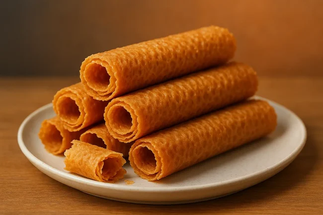 Croustillante roulée. Symbole breton. La crêpe dentelle, fine et croustillante, incarne l’âme de notre Bretagne gourmande. Issue d’un heureux oubli de Marie-Catherine Cornic en 1886, elle se distingue par son croustillant unique, fruit d’une cuisson maîtrisée. Chez vous, elle se décline en recette maison ou versions industrielles, comme les Gavottes. En accompagnement d’un café, émiettée…