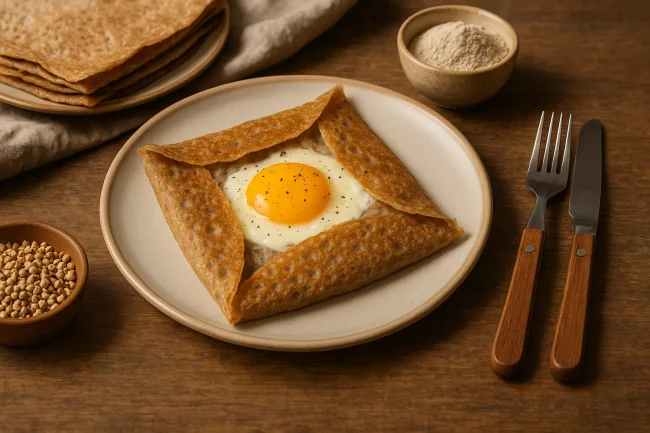 Chers amis gourmands, je vous partage la recette de galettes de blé noir de ma grand-mère ! Traditionnellement, c’est une pâte simple : farine de sarrasin, eau et gros sel de Guérande, sans beurre ni œufs. Mélangez énergiquement, laissez reposer toute une nuit pour révéler les arômes, puis faites chanter la pâte sur une poêle…