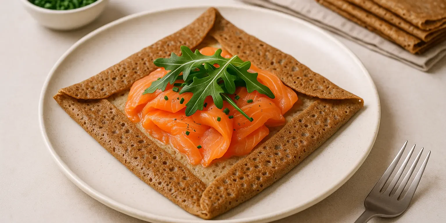 L’ajout de l’œuf au centre rappelle un peu sa cousine, la fameuse recette de la crêpe complète, un classique de notre région. Servie tiède, cette galette allie les notes fumées du saumon et la rusticité du sarrasin pour un plat qui réunit toute la famille en moins de 10 minutes. Pour les amateurs de saveurs plus douces, une salade verte fraîchement égouttée accompagne à merveille ce plat riche en protéines et en histoire bretonne.