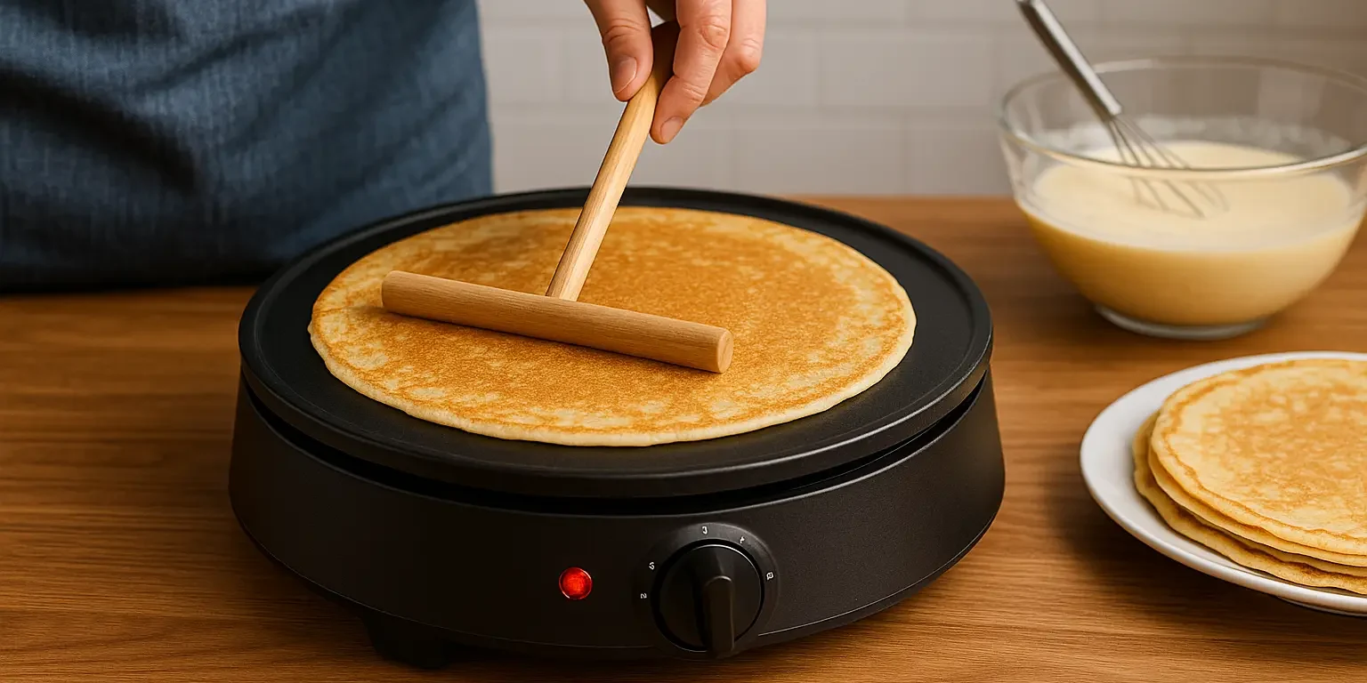 - Accessoires : Un bon rozell arrondi facilite l’étalage. La spatule en plastique rigide est idéale pour décoller les crêpes sans rayer la plaque.
