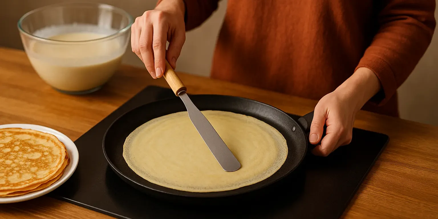 Voici mon secret de Bretonne : maîtrisez la température ! Une plaque trop chaude assèche les bords avant même que le cœur ne cuise. Et surtout, n’attendez pas trop longtemps avant de retourner la crêpe. Quand les bords dorés se détachent seuls ? C’est le moment parfait ! Un bon spanell en inox bien aminci vous aidera à vérifier la cuisson sans abîmer la crêpe…